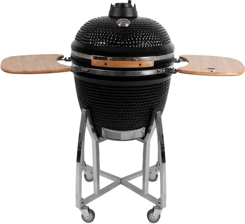 Een eenmaal hete kamado grill houdt de temperatuur erg lang vast. Bedenk dat je grote veranderingen onderin regelt en de fijne afstelling bovenin. Doe alles in kleine stappen anders gaat je kamado zelf zijn eigen plan trekken en wordt dan veel te heet. Voorzien van robuuste inklapbare hardhouten of roestvrijstalen zijtafels, is de Caliber Pro Kamado Grill dé combinatie van stijl, traditie en raffinement. Een typische grill en smoker, gemaakt van een keramische kom die extreem hoge temperaturen kan weerstaan.